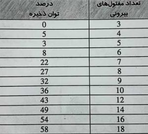 توان ذخیره عبارت است از جمع توان تمامی مفتول های سیم بکسل به غیر از مفتول های لایه ی بیرونی استرند، که با توجه به جدول زیر مقدار آن برای انتخاب سیم بکسل مشخص می شود.